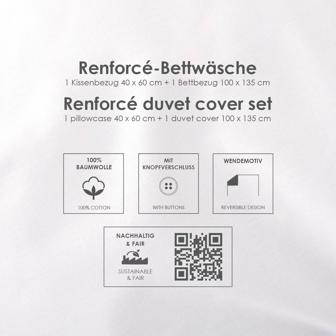 Inhalt & Größe: 1 Kissenbezug (40 x 60 cm) & 1 Bettbezug (100 x 135 cm)