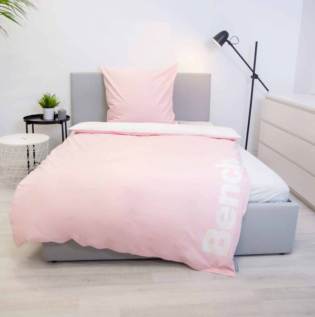 Diese hellrosa Wendebettwäsche mit großem Bench-Logo bringt minimalistischen Stil ins Schlafzimmer. Aus 100 % Baumwolle in Renforcé-Qualität gefertigt – ideal für alle, die es klar und hochwertig mögen.