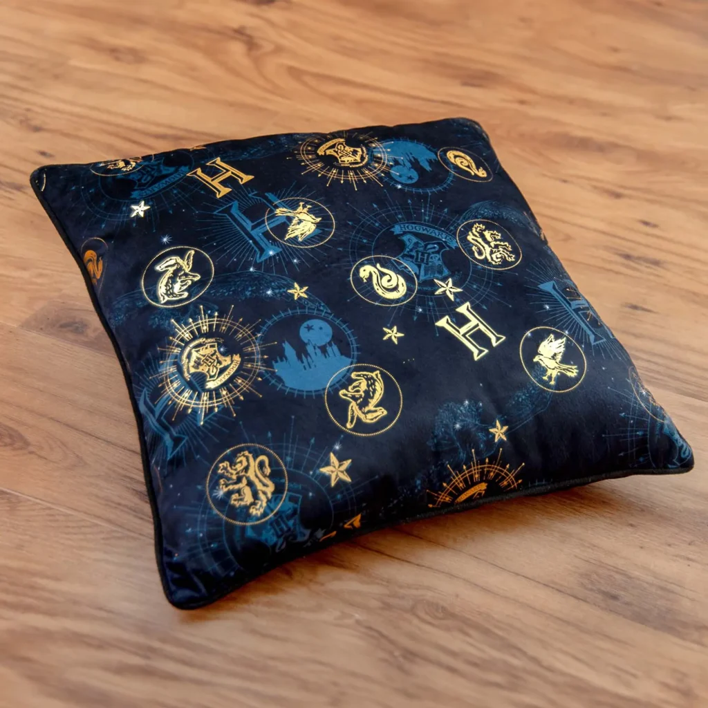 Dieses dekorative Kissen mit den detailreichen Wappen der vier Hogwarts-Häuser bringt magische Stimmung in dein Zuhause.