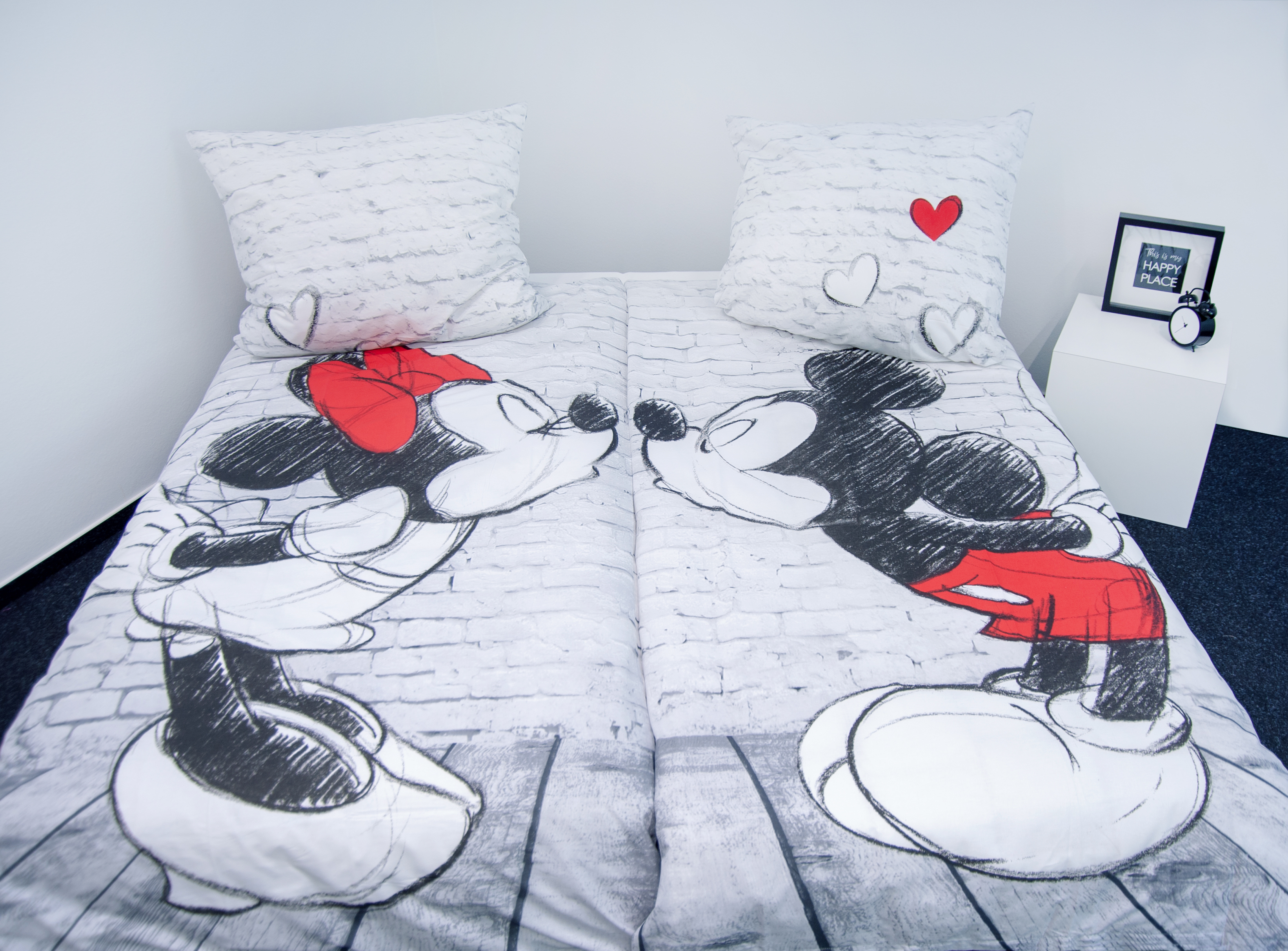1x Mickey & Minnie Partnerbettwäsche-Set ‘Kiss’ – 2× 135×200 cm oder 2× 140×200 cm (Renforcé)
