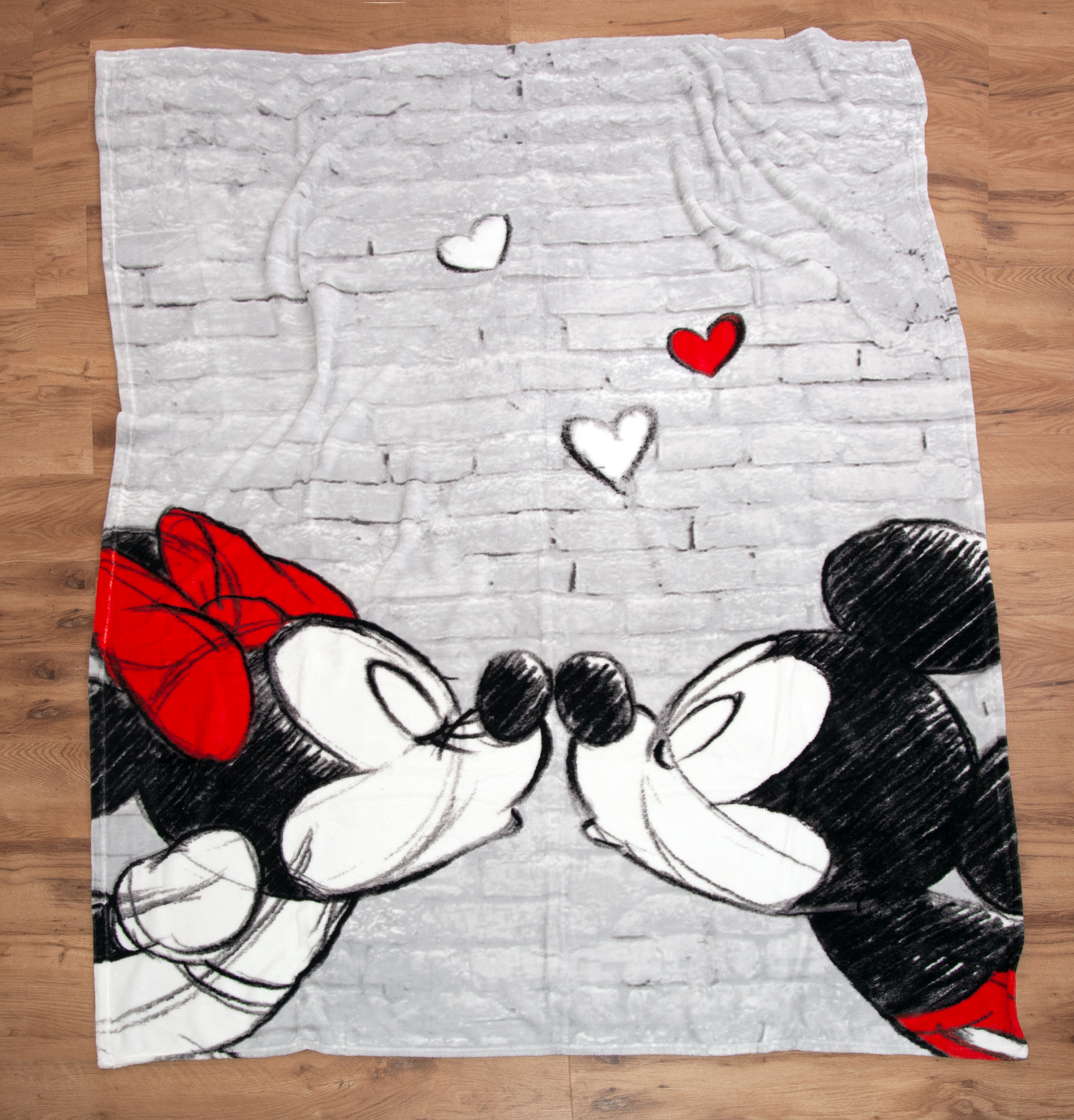 Startseite > Alle Produkte > SALE > Sets > Mickey & Minnie Love-Bundle ‘Kiss’ – Partnerbettwäsche, Wohndecke & Dekokissen