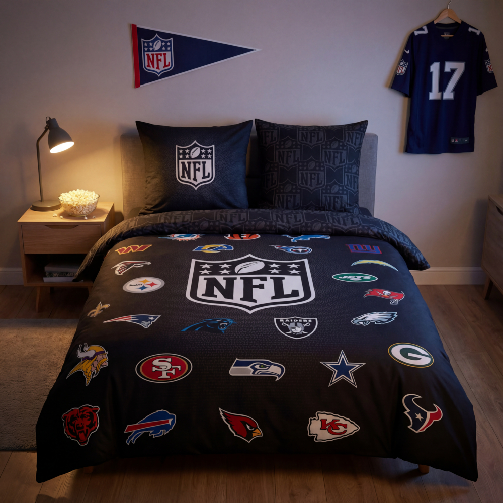 Mach dein Schlafzimmer und Wohnzimmer zur Fan-Zone – mit dem offiziellen NFL Fan-Bundle von HERDING. Dieses Set bringt die Atmosphäre der National Football League direkt zu dir nach Hause.