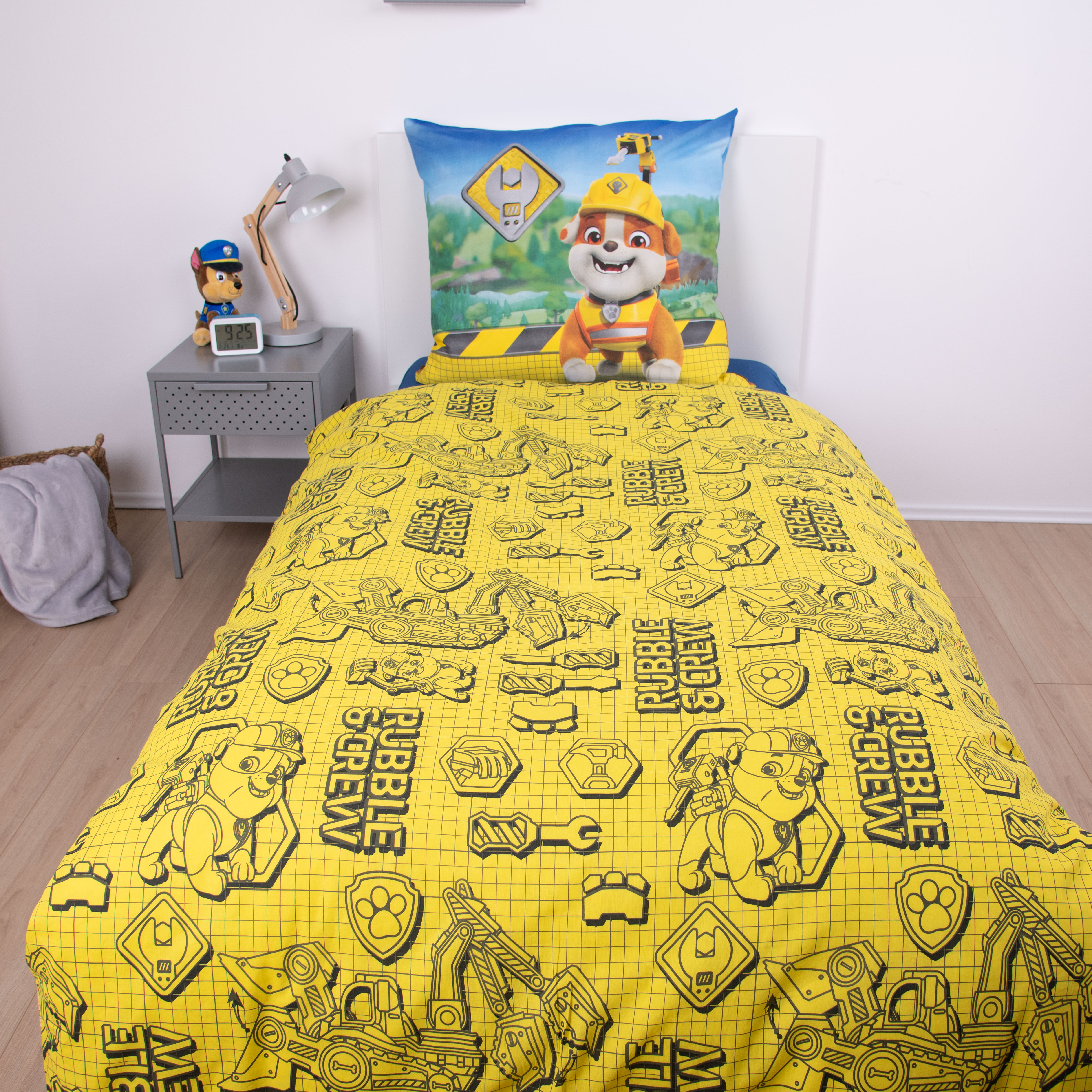 Für kleine Bauhelden: Mit der Rubble & Crew Bettwäsche Helden auf der Baustelle zieht Action und Abenteuer ins Kinderzimmer ein. Das farbenfrohe Design zeigt die beliebten Hunde-Charaktere der Serie bei ihren Baustellen-Missionen – perfekt für alle Fans, die von spannenden Träumen nicht genug bekommen.