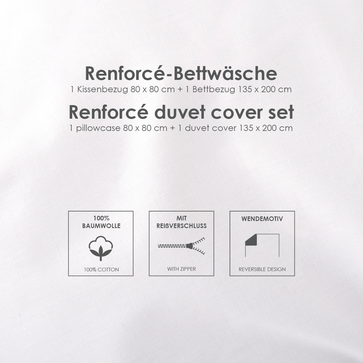 Inhalt: 1 × Kissenbezug (80×80 cm), 1 × Bettbezug (135×200 cm)