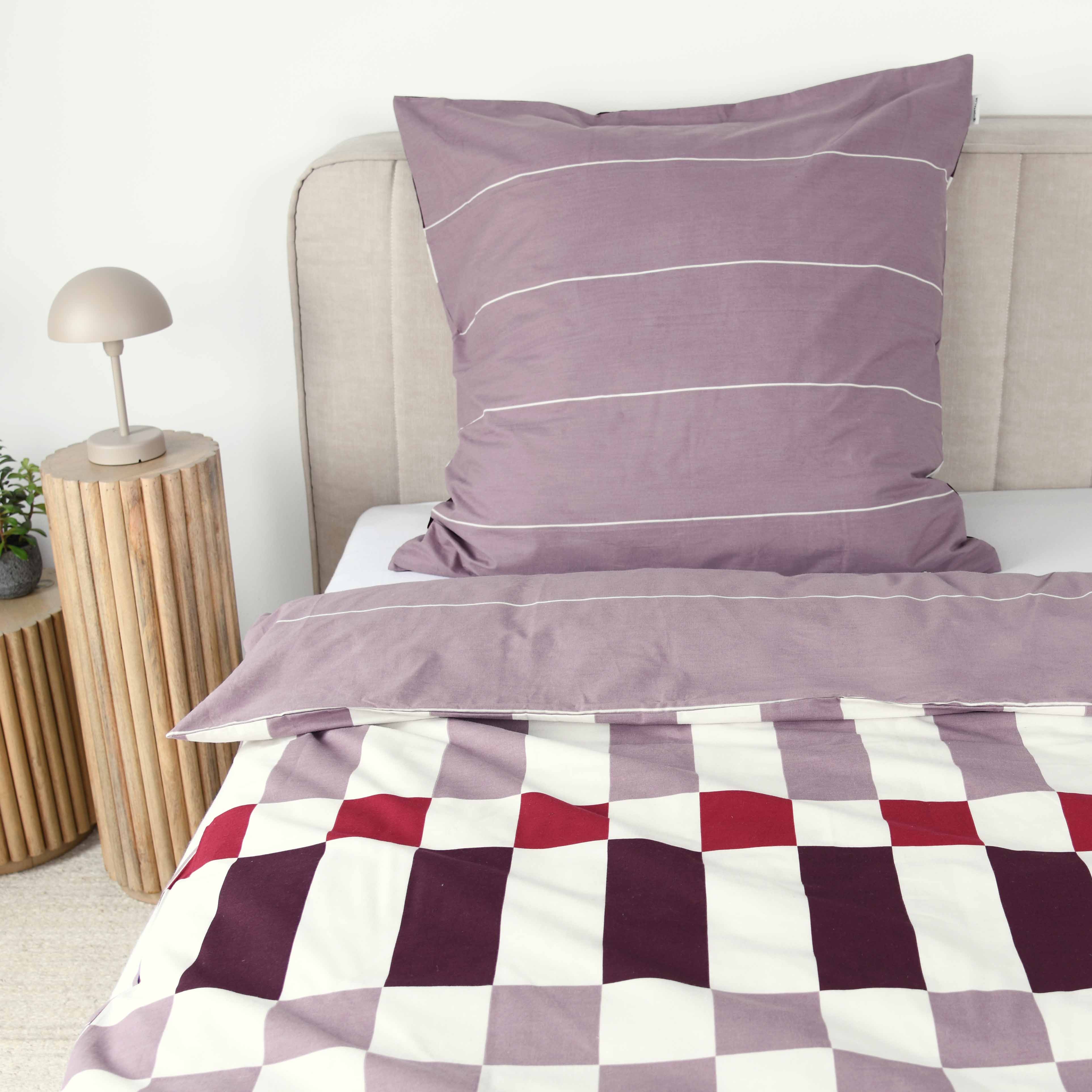 Mit der Bettwäsche ‘Bold Check Cozy Mauve & Plum & Off White’ bringst du modernen Karo-Stil ins Schlafzimmer.