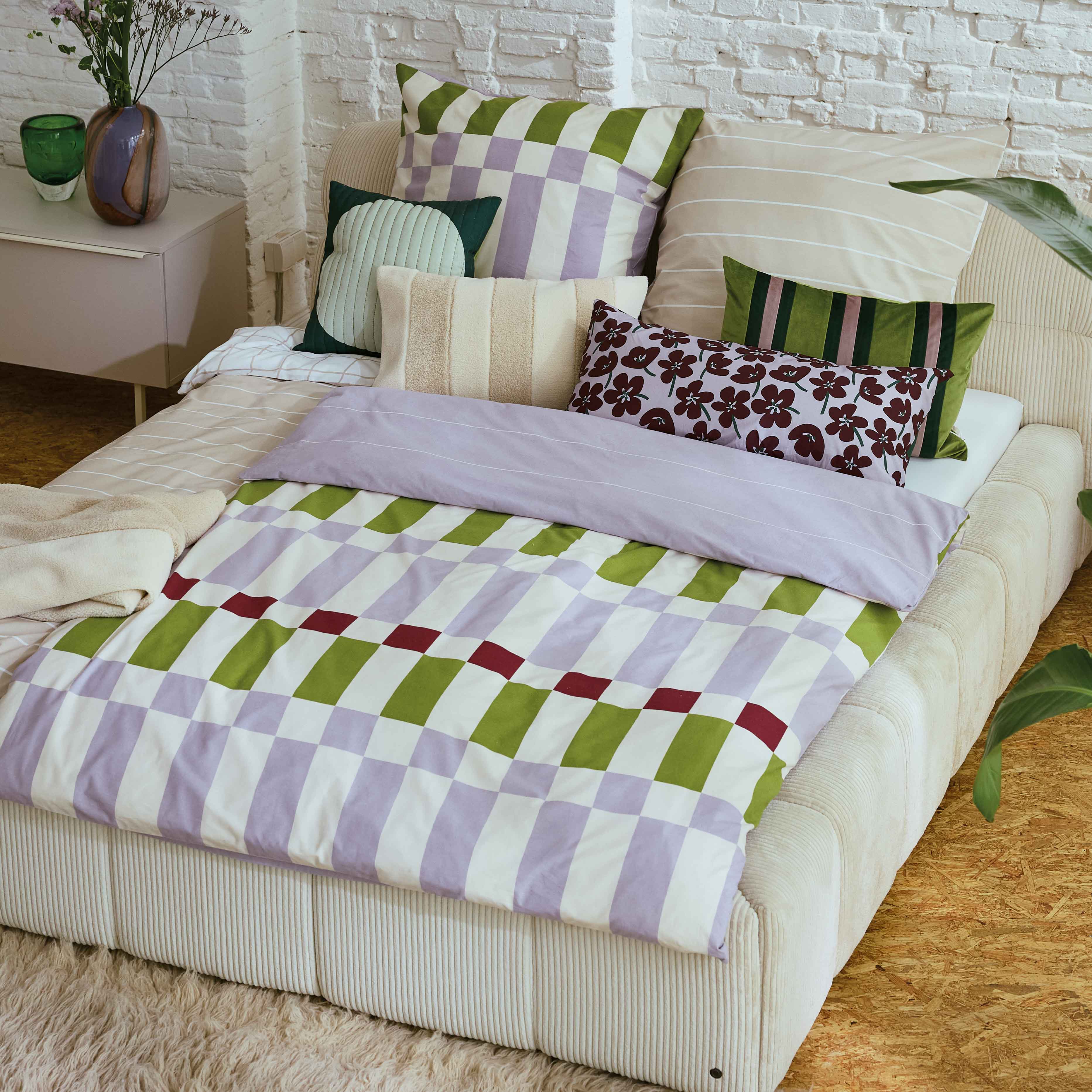 Die Bettwäsche ‘Bold Check Soft Lilac & Moss Green & Off White’ bringt frischen Karo-Stil in dein Schlafzimmer.