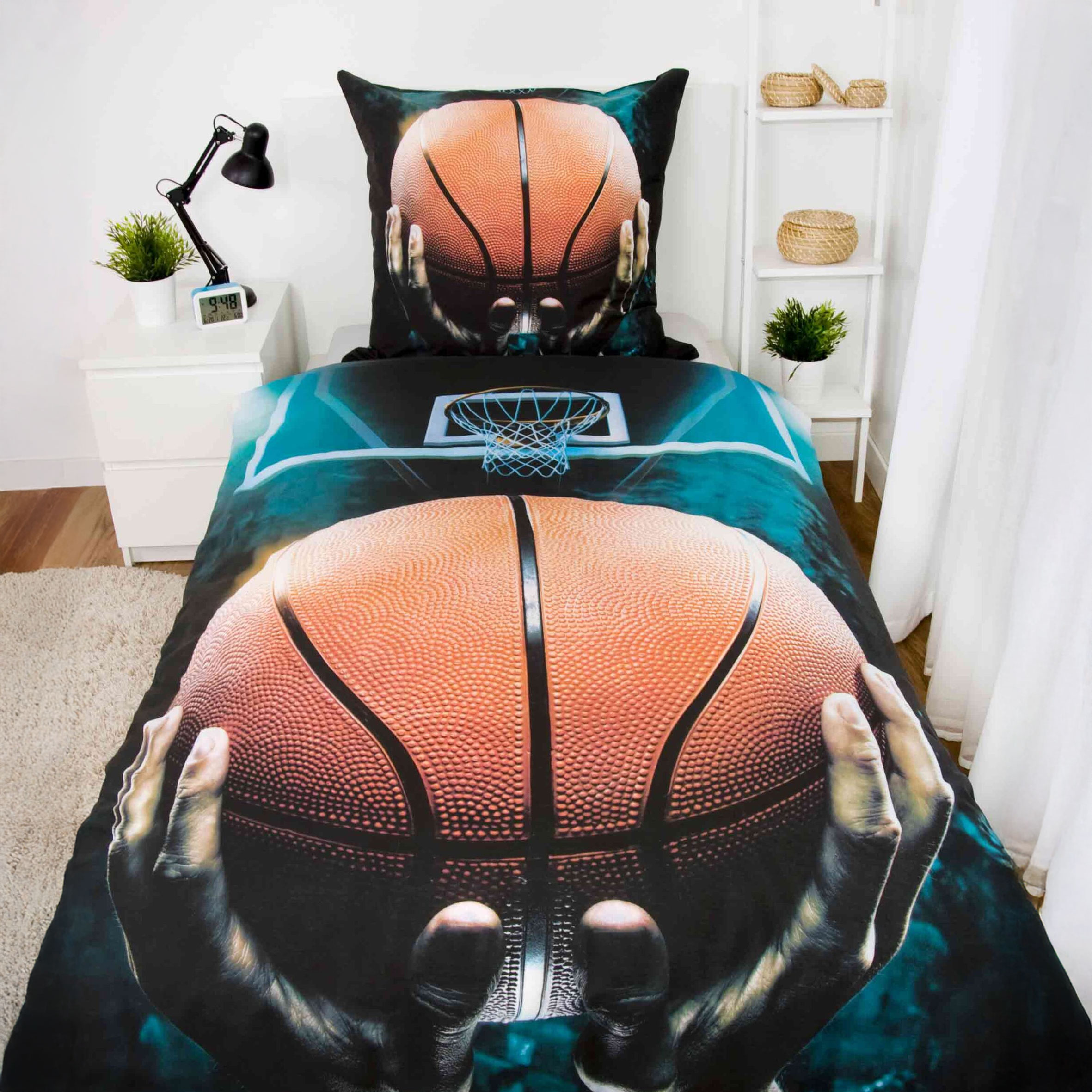 Diese coole Wendebettwäsche mit dynamischem Basketball-Motiv bringt sportlichen Flair ins Schlafzimmer. Aus 100 % Baumwolle in Renforcé-Qualität gefertigt – ideal für Kinder, Jugendliche und alle, die Basketball lieben.