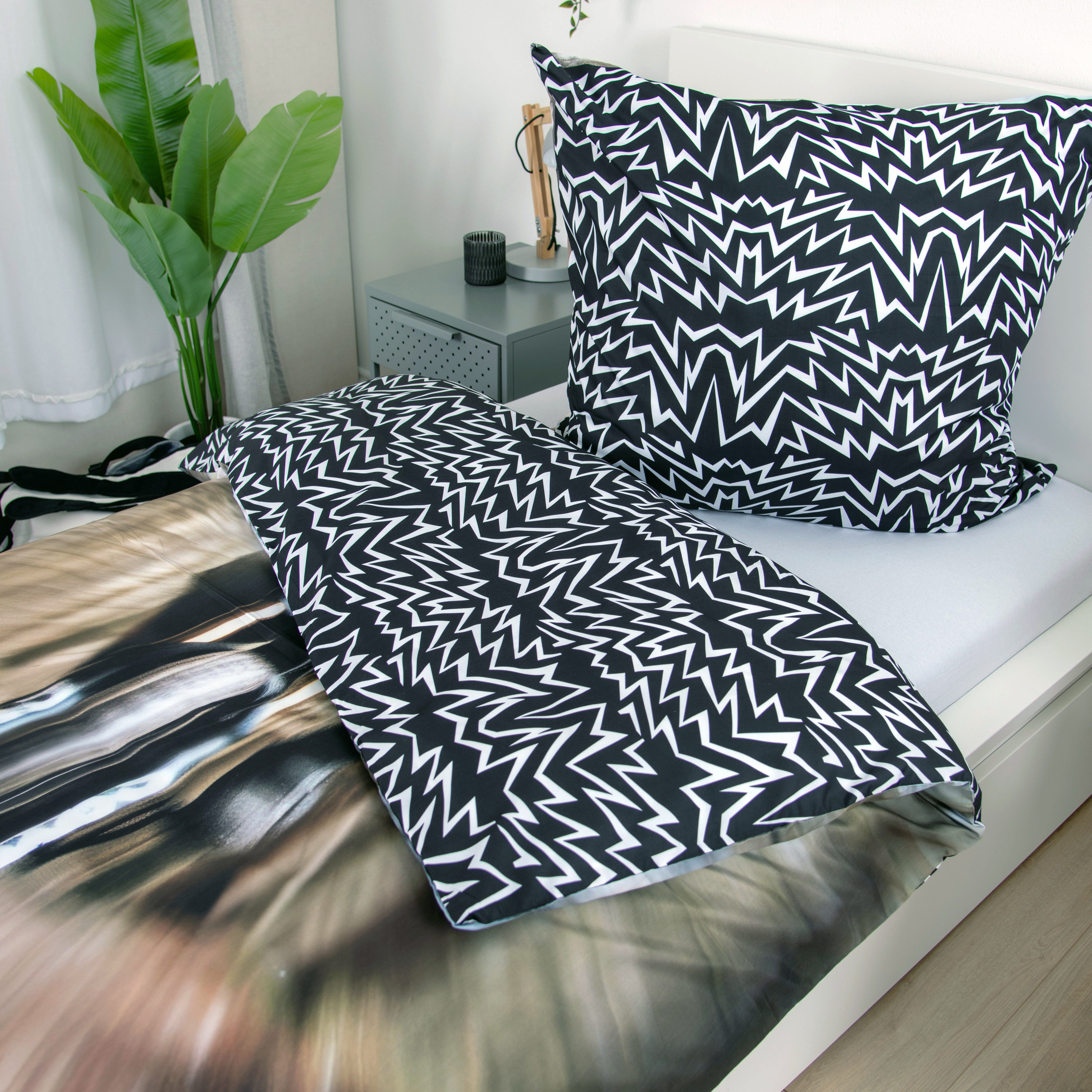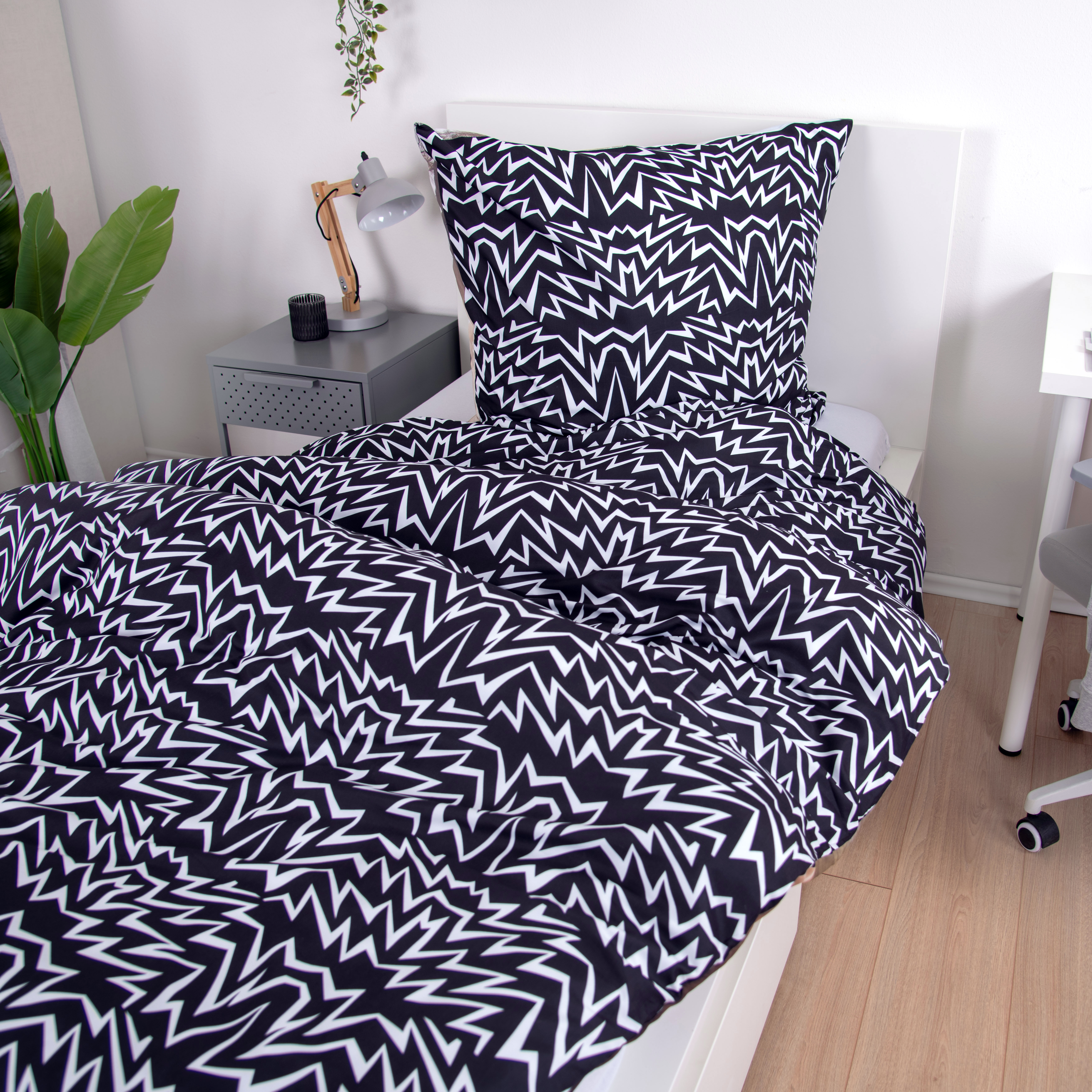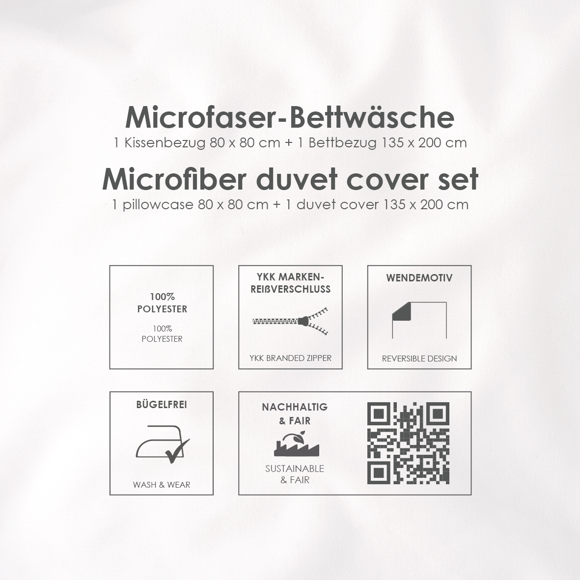 Das Set besteht aus einem Bettbezug (135×200 cm) und einem passenden Kissenbezug (80×80 cm) – waschbar bis 40 °C und trocknergeeignet.