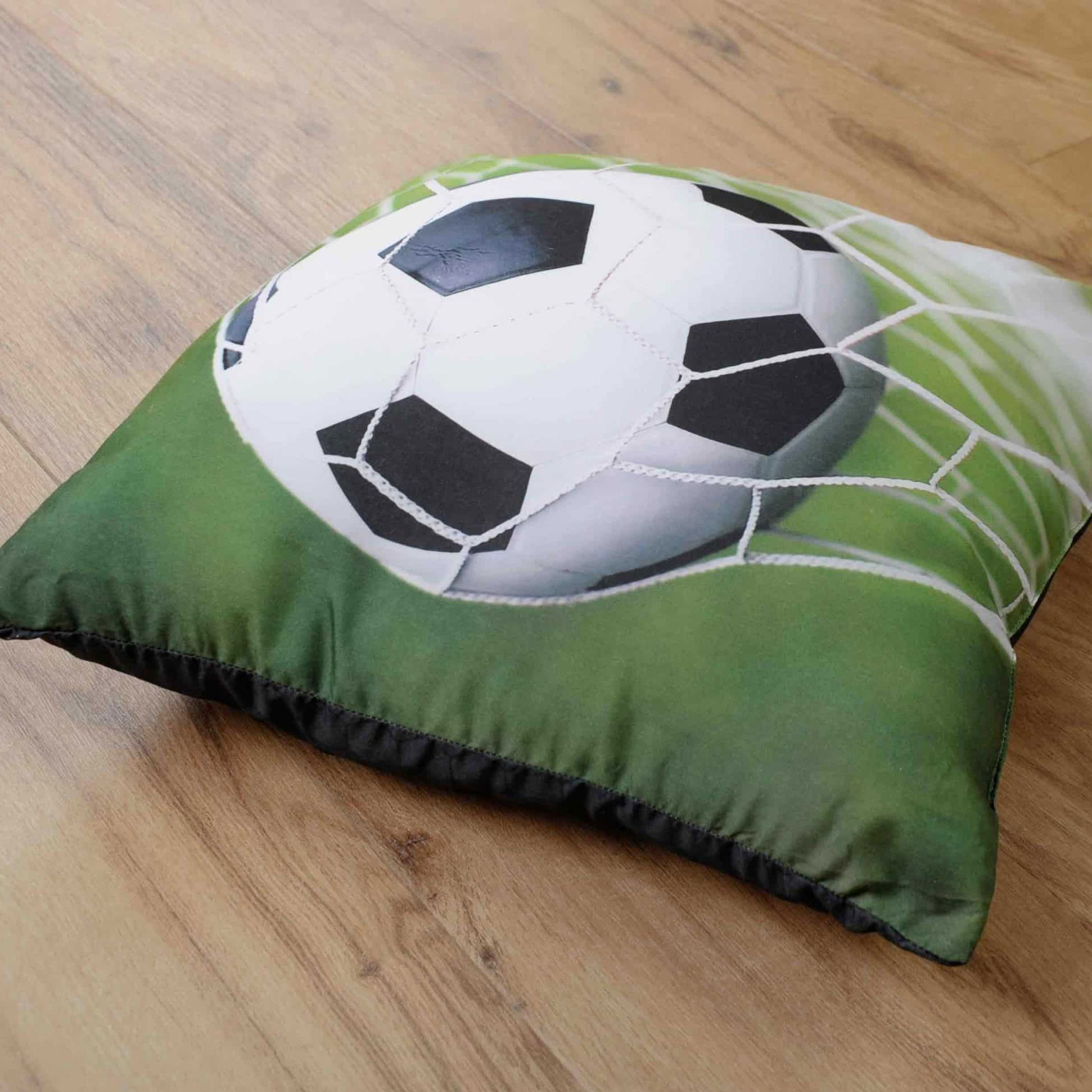 Dieses coole Dekokissen im Fußball-Design begeistert kleine Fußballfans und macht das Kinderzimmer zum sportlichen Highlight.