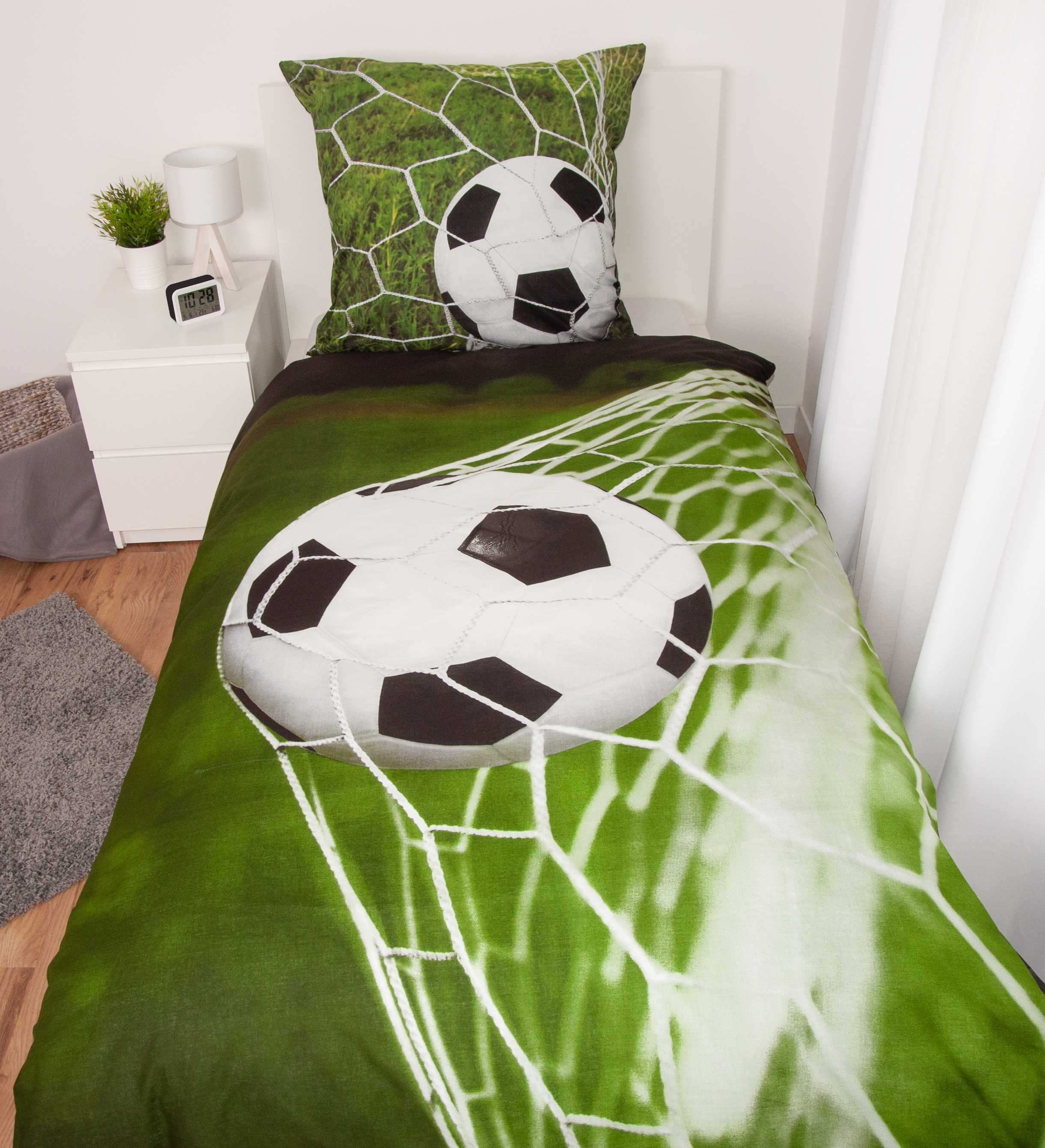 Fußball-Style im Set: Bettwäsche ‘Fußball Tor’ + Dekokissen + Badetuch – perfekt für Zimmer, Bad & Training.